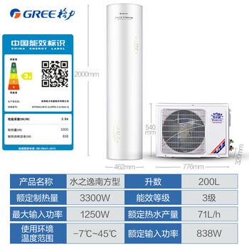 格力(GREE) 空气能热水器家用200升 京东小家 WiFi智能 水电分离 水之逸SXT200LCJW/E-3j(3-5人)