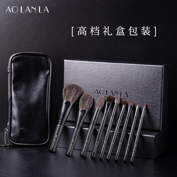 AOLANLA尊者级灰鼠毛化妆刷套装9支全动物毛美妆工具礼盒生日礼物送老婆