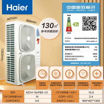 海尔(Haier)空气能采暖家用地暖空调一体机家用APP智能变频集成冷暖机水箱套装 KD14-NcPB5-U1