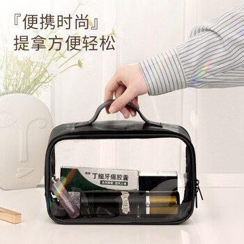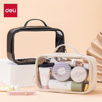 得力(deli)旅行收纳袋收纳包 化妆品洗漱收纳包 手提外出携带方便 白 64871