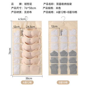 班哲尼内衣收纳挂袋袜子内裤挂袋家用宿舍柜子墙挂悬挂式储物袋12+18格
