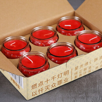 星光缘酥油灯蜡烛供佛香薰家用应急照明生日浪漫表白结婚长明莲花灯红色24小时6粒