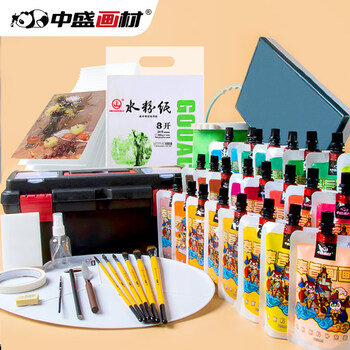 【全网低价】中盛画材 【加量20%】24色水粉颜料套装初学者工具箱儿童水粉画笔洗笔桶美术生专业艺考画材集训画画纸美术写生