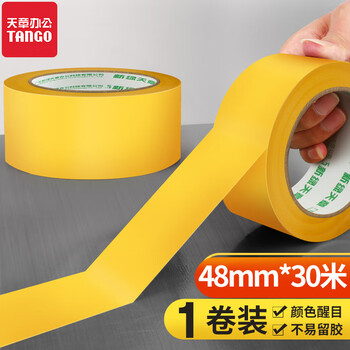 天章 (TANGO)黄色警示胶带48mm*30米*1卷装可防台风工厂地板操作区地面定位标识胶带防水贴地地面不易留痕