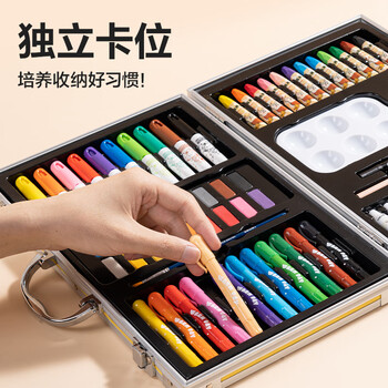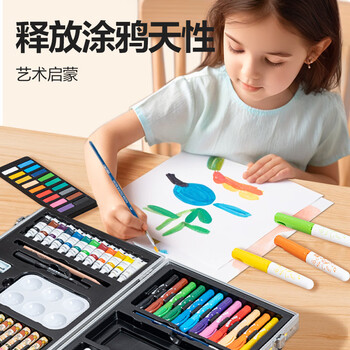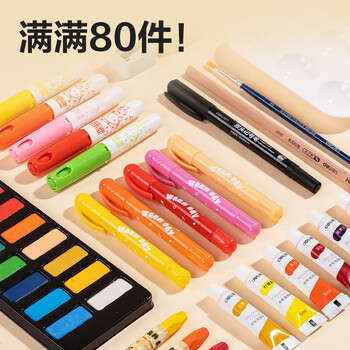 得力deli80件绘画画画水彩笔油画棒旋彩颜料涂色手提铝合金礼盒男孩女孩儿童礼物线圈小狗元旦文具礼盒