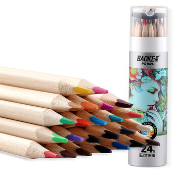 宝克(BAOKE)PO1624原木油性24色三角杆彩铅彩色铅笔填色彩笔绘画笔纸筒装