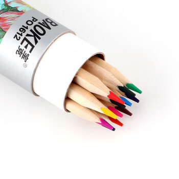 宝克(BAOKE)PO1612原木油性12色三角杆彩铅彩色铅笔填色彩笔绘画笔纸筒装