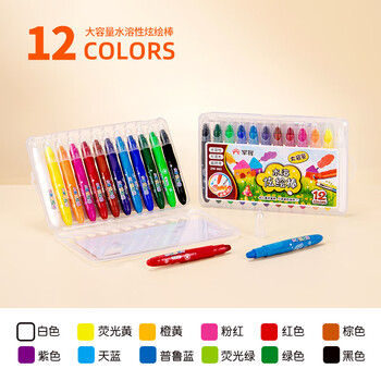 掌握12色儿童水溶性油画棒不易脏手蜡笔安全可水洗画笔幼儿园小学生专用美术画画笔炫彩棒开学季礼物
