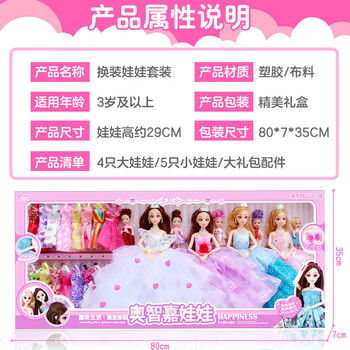 玩具乐器---绘画/DIY/户外/娃娃/过家家---娃娃玩具---儿童仿真/换装娃娃奥智嘉(AoZhiJia)4大5只小娃娃换装大礼盒