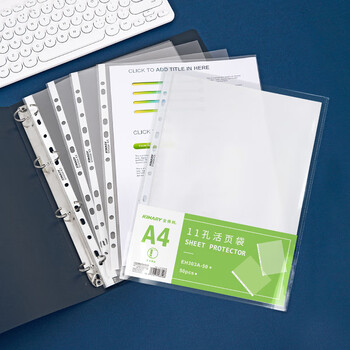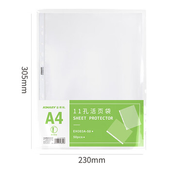 金得利50个装11孔活页袋a4通用打孔文件袋透明资料活页替芯插页袋子适用于2/3/4孔文件夹资料册EH303A-50