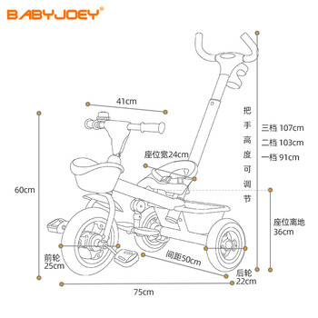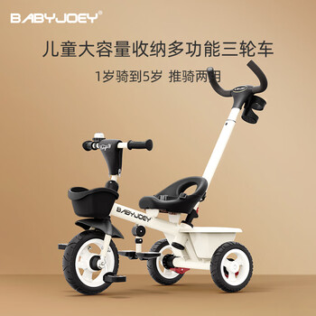 BABYJOEY英国儿童三轮车脚踏车1-3-5岁 简易自行车多功能手推车小蜜蜂白色