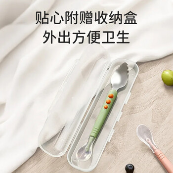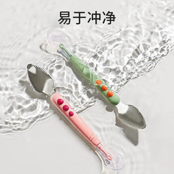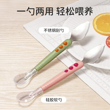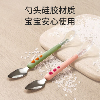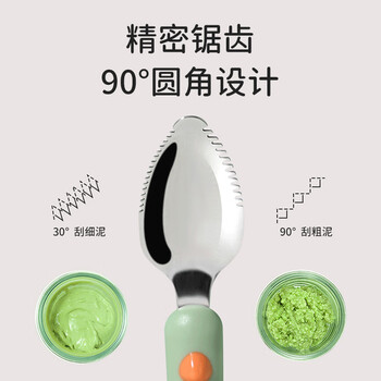 葆氏刮泥勺婴儿辅食勺宝宝辅食工具双头硅胶软勺水果泥勺子儿童餐具绿