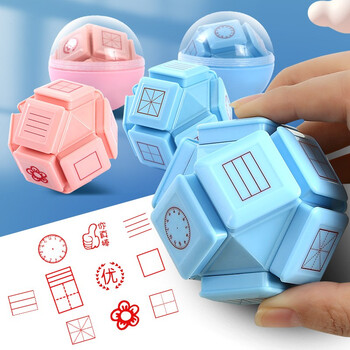 法拉蒙(faramon)十面魔方印章小学生升级款多功能教学纠错订正儿童印章田字格拼音钟表印章 粉色-盒装