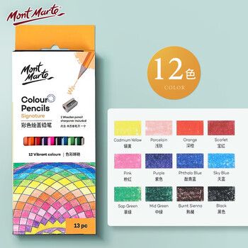 【全网低价】蒙玛特(Mont Marte)油性彩铅12色 彩铅笔画画彩色铅笔美术绘画铅笔套装 盒装手绘填色画笔学生画画笔MPN0137 速写 马克笔绘画