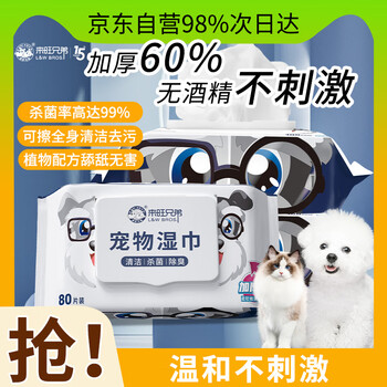 来旺兄弟狗狗湿巾3包免洗清洁全身杀菌去污擦脚擦泪痕舔舐无忧湿纸巾