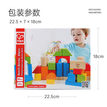 Hape(德国)婴幼儿童拼搭木质积木玩具40粒彩虹积木宝宝生日礼物E8321