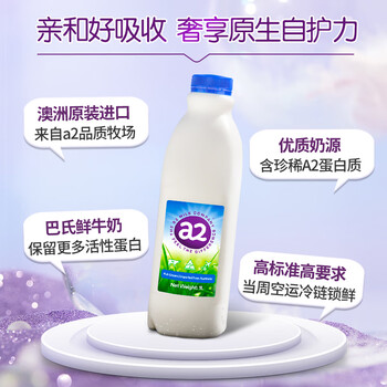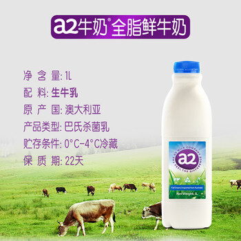 a2全脂鲜牛奶1L 低温巴氏杀菌 孕妇奶 营养早餐牛奶 纯牛奶