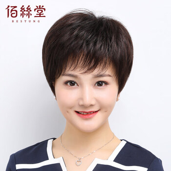 佰丝堂假发女短发全头套式短直发中老年妈妈假发套真发100%真人发丝自然
