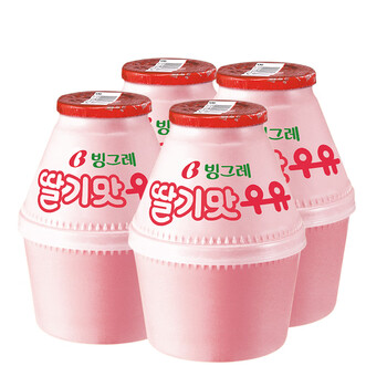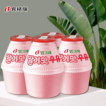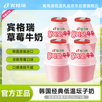 宾格瑞(BINGGRAE)草莓牛奶238ml*4瓶 韩国进口坛子奶 早餐奶 儿童奶 学生奶 低温奶