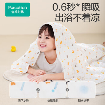 全棉时代儿童浴巾纯棉透气纱布浴巾新生婴儿宝宝洗澡大毛巾 飞机蓝95*95cm