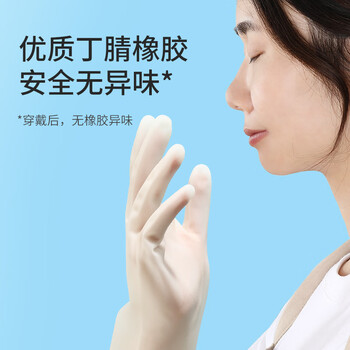 美丽雅丁腈手套1双均码加长33cm橡胶洗碗洗衣洗菜清洁家务加厚丁晴手套