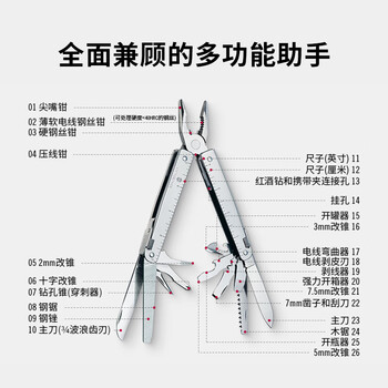 维氏瑞士军刀骑行装备直柄多功能工具钳X115mm折叠刀蝴蝶刀3.0327.L