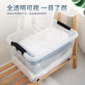 JEKO&JEKO透明衣物收纳箱加大号玩具整理箱搬家箱打包箱被子储物箱55L3只装