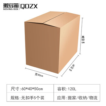 QDZX搬家纸箱大号储物整理箱子收纳行李打包装盒无扣手60*40*50(5个