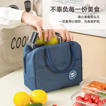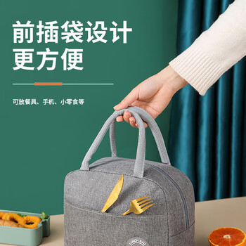 梦庭 收纳袋 便携饭盒袋手提保温袋 学生饭盒便当保温包防水加厚 灰色