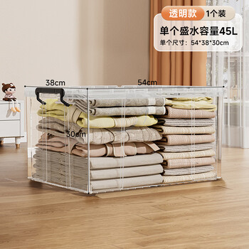 JEKO&JEKO特耐斯直角收纳箱透明玩具衣服储物箱整理箱搬家打包箱45L 1只装