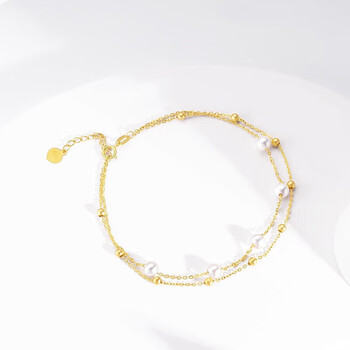 潮宏基珠光珍珠18K金彩金手链女手串送女友生日礼物 约16cm加尾链