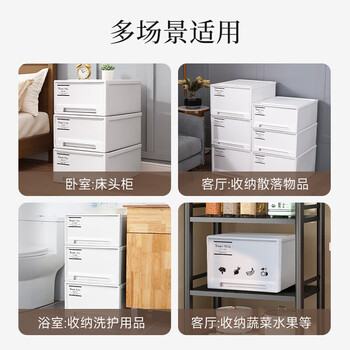 百草园收纳箱抽屉式收纳柜衣柜收纳盒52.5*43.5*28.5cm3个白