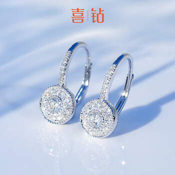 喜钻生日礼物白18K金钻石耳饰女款钻石耳环钻石耳坠送女友送老婆