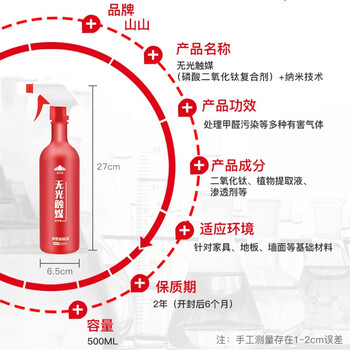 山山强力除甲醛清除剂去甲醛无光触媒喷剂室内高效除异味活性炭500ml