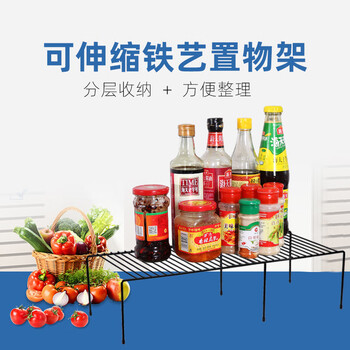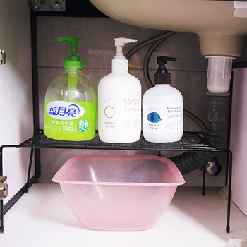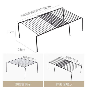 侑家良品 下水槽置物架分层储物架可伸缩厨房台面收纳架黑色 长32-58cm