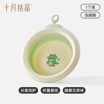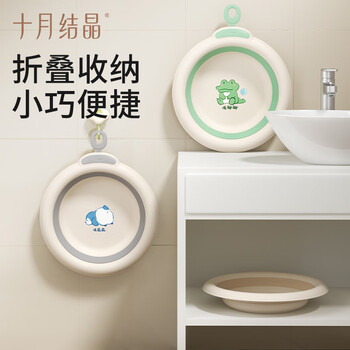 十月结晶婴儿洗脸盆初生宝宝盆洗脚洗pp盆儿童可折叠盆浅绿1只