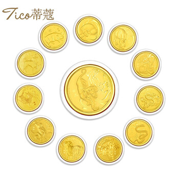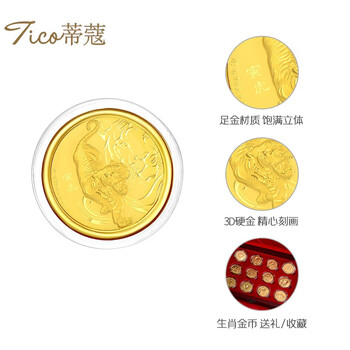 蒂蔻(Tico)新年贺岁足金十二生肖虎金章黄金压岁钱红包利是封生肖金片