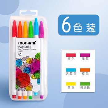 慕那美(monami)新P3000纤维笔水性笔彩色中性笔套装水彩笔勾线笔手帐笔彩虹6色04009Z06-RB水彩笔