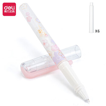 得力(deli)光樱下系列暗尖学生矫姿练字正姿钢笔墨水笔 附6纯蓝墨囊 A938