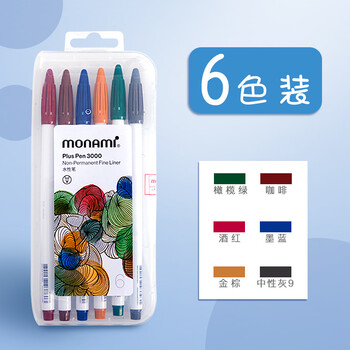 慕那美(monami)新P3000纤维笔水性笔彩色中性笔套装水彩笔勾线笔手帐笔复古6色04009Z06-V水彩笔
