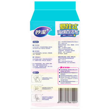 妙洁 悬挂式海绵百洁布 5片装 包装内含悬挂吸盘 厨房洗碗抹布神器
