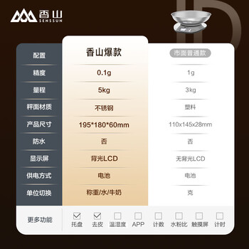 香山电子秤厨房秤 咖啡秤 烘焙秤称菜茶叶 LCD背光大屏 0.1g带载物盘