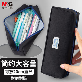晨光(M&G)文具学生笔袋大容量简约小方包多功能考试铅笔盒文具盒文具收纳袋用品黑色APB932H8