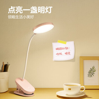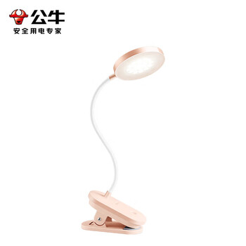 公牛(BULL)A级照度ML-D005B-DS充插两用无极调光宿舍家用夹子台灯粉色4000K