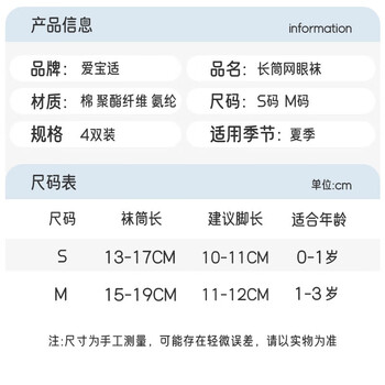 爱宝适婴儿袜夏款季宝宝长筒袜新生儿过膝袜卡通防蚊袜4双装S码 S230