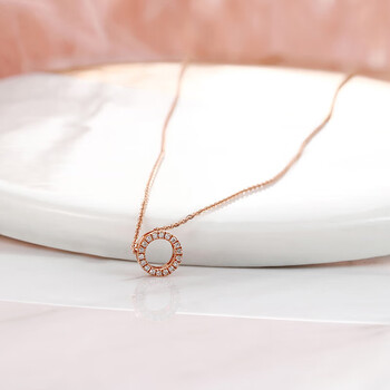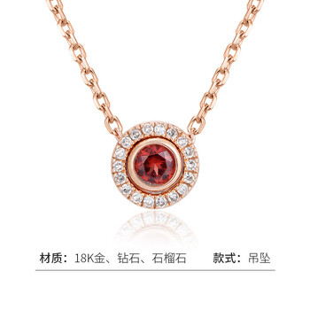 千叶珠宝18K金钻石吊坠玫瑰金轻盈石榴石坠无链 需搭配针球链生日礼物