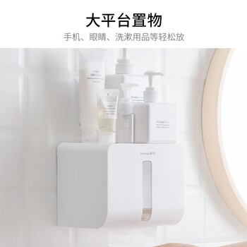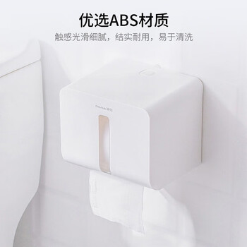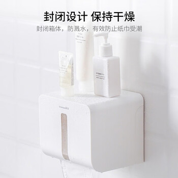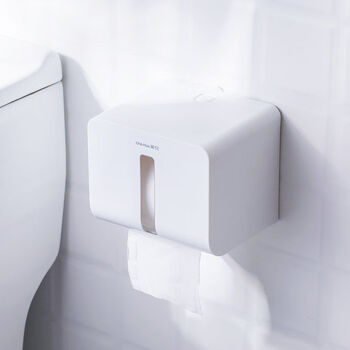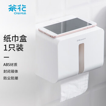 茶花纸巾盒 厕所抽纸盒 卫生间置物架免打孔卷纸架 白色 1只装
