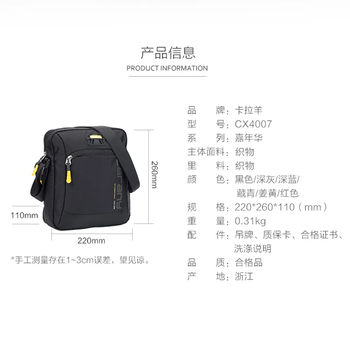 卡拉羊休闲运动包男单肩包多用斜挎包轻便潮流胸包CX4007藏青