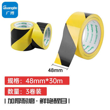 广博(GuangBo)48mm*30m单卷3卷装黑黄斜纹警示胶带反光贴斑马胶带消防隔离带警戒地标线工厂仓库办公用品S45251