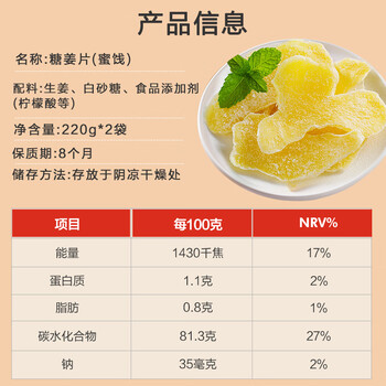 猪兄糖姜片220g*2袋 姜糖片去寒暖胃生姜片即食泡茶休闲零食蜜饯